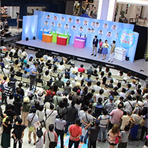 ホールやスクエアから番組の生中継をしたりと、ミルンと連携したイベントを行っています。